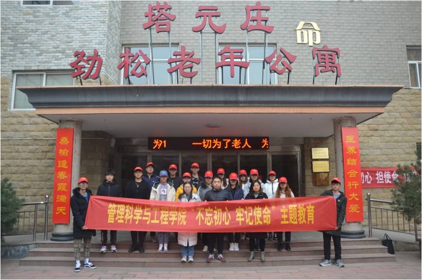 11月29日,管理科学与工程公司在塔元庄劲松老年公寓开展了“不忘初心,牢记使命”主题教育志愿服务活动。公司团委书记张艳娥、教务办公室主任马芸芸、张培兴博士以及公司志愿者团队参加了本次活动。