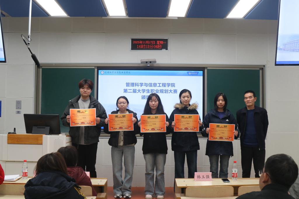 韩玉强老师为就业赛道一等奖获得者颁奖