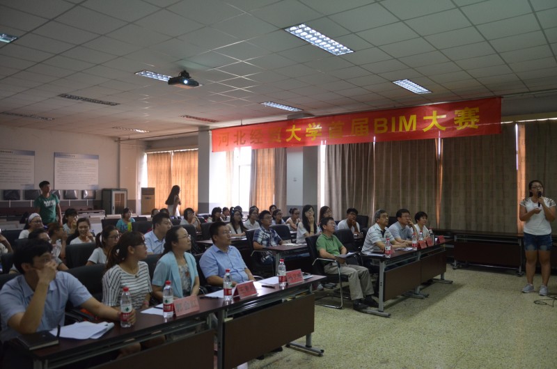 比赛分为两个环节。第一环节,参赛选手对1号办公楼工程进行钢筋量上机计算,历时三个小时;第二环节,选手们以PPT形式汇报展示如何高效进行BIM算量,并进行现场答辩,经各位评委的认真评选,大赛最后评出一等奖一名、二等奖两名、三等奖三名。