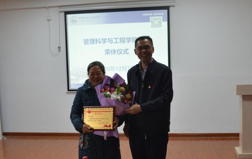 仪式上,公司党委书记高永芳向宋洁老师颁发了荣休纪念牌并赠送鲜花,他表示公司的成长壮大离不开每一位老师的贡献,并代表全院师生对宋洁老师所做的贡献表示感谢。信息管理与信息系统系原系主任樊广佺教授,讲述了宋洁老师多年以来为公司信息管理与信息系统专业建设与发展做出的贡献。信息管理与信息系统系系主任成岳鹏代表信息管理与信息系统所有教师感谢宋洁老师为信管系发展做出的突出贡献,并祝愿宋洁老师身体健康、生活美满幸福。最后,宋洁老师回忆了自己在公司工作的往事,并表示愿尽自己所能继续关心支持公司的发展建设。全体教师用热烈的掌声向宋洁老师荣休表达了祝贺。