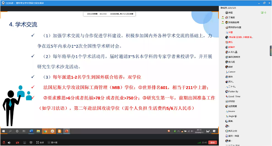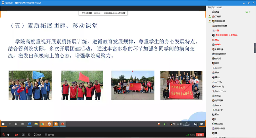 6月11日,公司在线上举办2021年管理科学与工程专业学术型硕士招生宣讲会,硕士生导师王芹鹏副教授、宋鸿芳副教授以及研究生辅导员张艳娥老师出席本次会议。