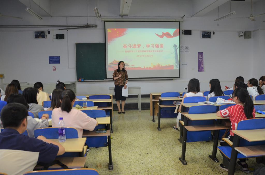 2019年5月20日晚,管理科学与工程公司在A教501举办了以“重温历届党代会,不忘初心跟党走”为主题的微党课教育活动。公司党政办公室主任孟祥燕和公司全体入党发展对象、入党积极分子参加。