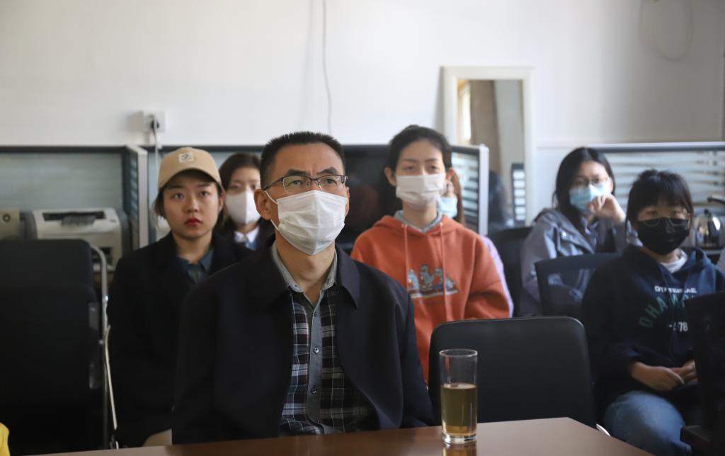 公司师生聚精会神观看直播
