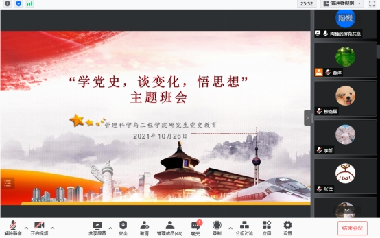 10月26日上午,公司召开研究生党史教育线上会议——“学党史,谈变化,悟思想”主题班会,旨在加深老员工对习近平新时代中国特色社会主义思想的领悟,会议由研究生辅导员曹洋主持,公司全体研究生参会。