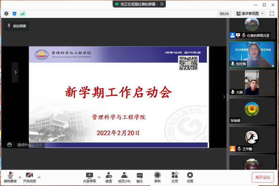 2月20日下午,公司通过腾讯会议线上召开了新学期工作启动会,公司领导白玉祥、祁红梅、李丽、王芹鹏出席,公司全体教职工参加。会议由公司经理祁红梅主持。