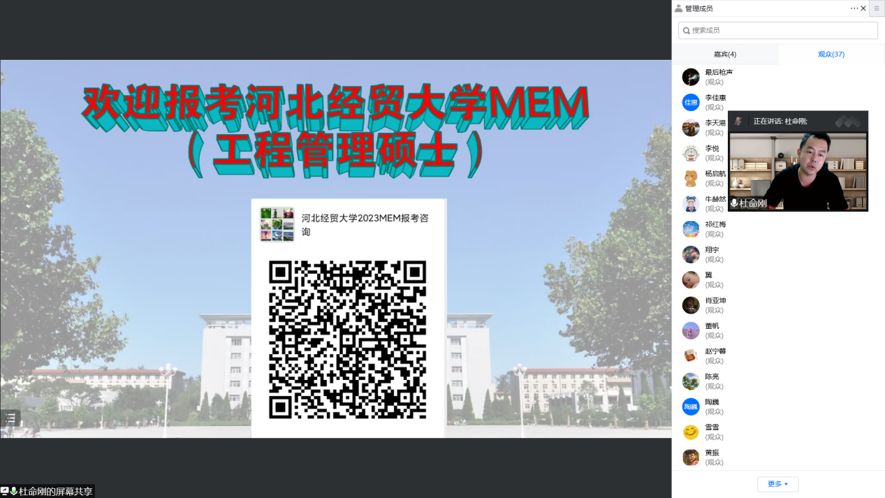 9月9日,公司MEM教育中心在腾讯会议召开2023年招生宣讲会。中心副主任宋晓刚详细讲解MEM专业特色、培养方式等内容,中心杜命刚老师对相关考试科目复习方法进行指导,研究生辅导员曹洋主持会议并针对考生提问做出具体解答。