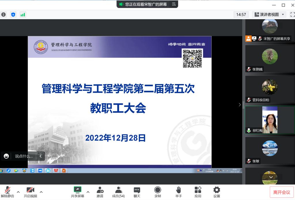 公司经理祁红梅在会上作了题为《以高素质人才培养为目标,持续深化新财经教育改革,推进公司跨越式稳步发展》的年度工作报告,对公司一年来在一流党建、公司产品、学术科研、团队建设、研究生教育、员工工作等方面的工作进行了全面详实的总结,对2023年工作提出了主要工作思路和工作目标。她指出公司各项事业发展,离不开每一位管科人的努力,号召全院职工在未来继续团结一心、共同努力,为培养高素质人才、为把公司建设成为财经特色鲜明的高水平公司而努力奋斗!