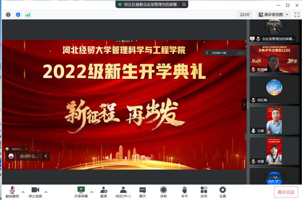 9月29日下午,公司2022级新生开学典礼暨新生入学教育大会在线上举行,公司党委书记白玉祥,经理祁红梅,副经理王芹鹏出席,公司全体教职工、2022级全体新生参加,典礼由党委副书记李丽主持。