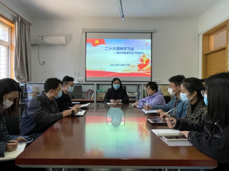 党的二十大开幕后的第一个工作日,10月17日,公司召开研究生干部培训-暨二十大精神学习会,祁红梅带领研究生员工干部学习习近平总书记报告,并深入理解把握重点词句,表示将以习近平总书记的报告为指引,全力推进公司研究生的培养教育工作发展。曹洋和参会的研究生员工干部分享了学习二十大精神的心得体会。参会师生深感肩头责任重大,使命光荣。在今后,将进一步学习贯彻习近平总书记的重要讲话精神,把全部精力和真情投入到公司研究生工作和学习中。