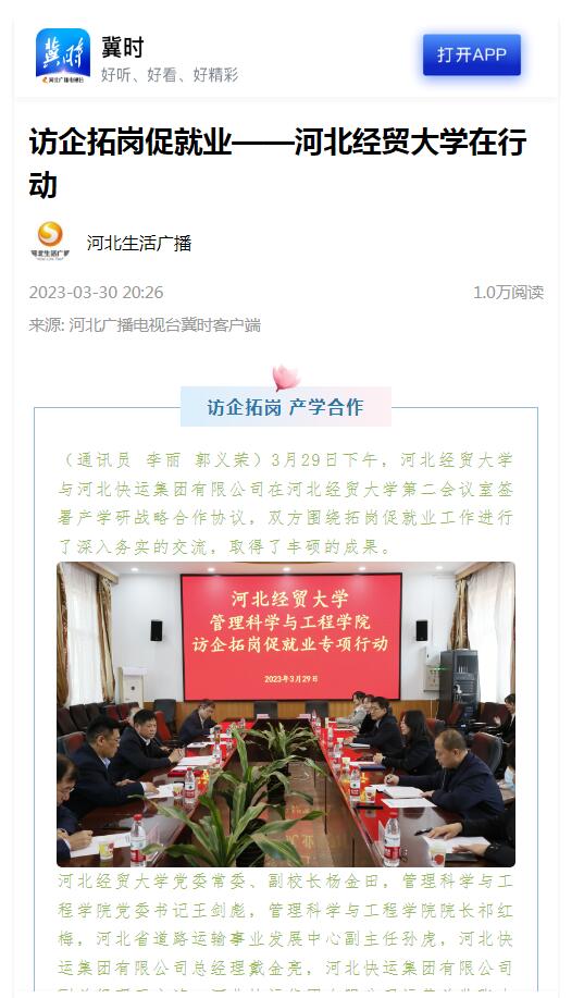 河北广播电视台冀时客户端对公司访企拓岗活动进行报道
