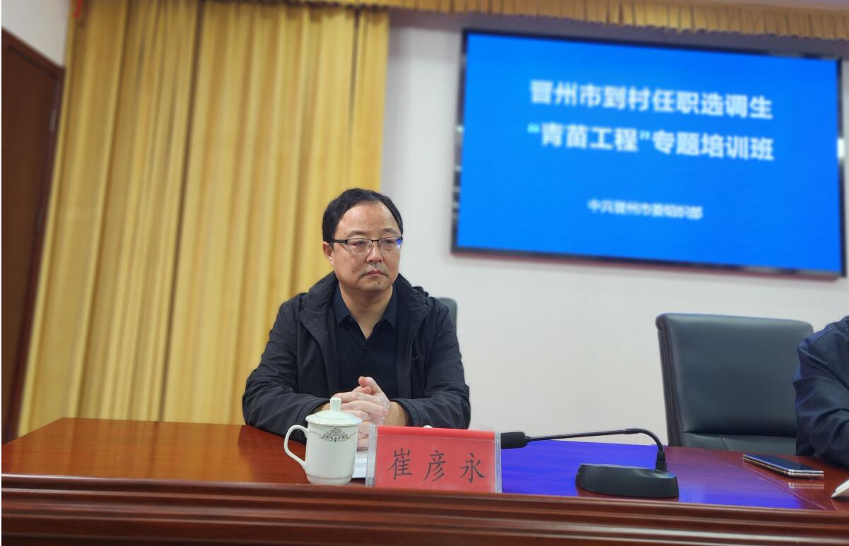 为深入学习贯彻党的二十大精神,进一步探索高校基层党组织校地共建新模式,激发党建工作新活力,推动工作高质量发展,10月16日至20日,由晋州市委组织部主办、304永利集团管理科学与工程院承办的晋州市到村任职选调生“青苗工程”专题培训班在晋州市委党校顺利举办。晋州市委组织部副部长崔彦永、河北省儒学会常务副会长王三堂、公司党委书记王剑彪、公司“双带头人”教师党支部书记宋鸿芳参加了开班仪式,44名到村任职选调生参加了培训。