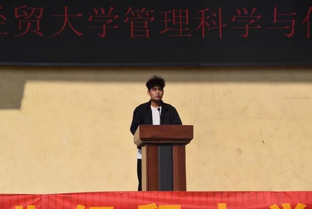 员工代表方队入场后,运动会开幕式正式开始。在致辞中,王剑彪对本次运动会的召开表示热烈祝贺,向辛勤筹备本次运动会的全体人员表示衷心感谢。他强调,运动会是一场体育竞技的盛会,倡导公平竞争、拼搏争先,尽情展现青春的活力与风采,同时希望全院师生以本次运动会为契机,传承团结、合作、友爱的精神,彰显坚强、自信、奋进的力量,凝聚管信人荣院爱院的自豪感。韩玉强鼓励同学们在比赛过程中秉持“友谊第一,比赛第二”的原则,发扬公平竞争、诚信参赛的精神,赛出成绩,赛出水平,为今后的学习和生活奠定坚实的基础。