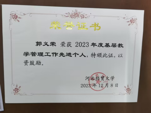 一心一意为员工,潜心教学育人才。在求知的征途上,有这样一位教师,他以其深厚的学科素养和独到的教育理念,成为了众多物流管理专业学子心中的榜样。他便是省级创新创业课程《物联网与智慧物流》负责人——郭义荣。作为304永利集团物流管理系主任,郭义荣老师多次荣获优秀教师、职业指导优秀老师等荣誉,是员工职业愿景的引领者。在接下来的篇章中,我们将带您领略郭义荣老师的教学风采,倾听他教学创新的真知灼见,体会他对教育事业的执着与奉献。