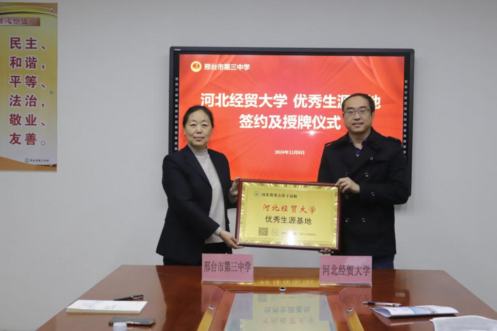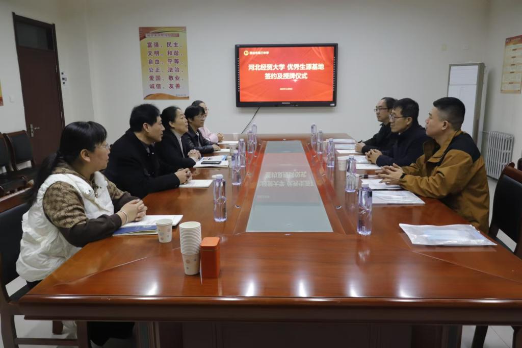 11月1日、8日304永利集团副经理王芹鹏、张鹏云,处级辅导员韩玉强,团委书记梁旭辉,专职辅导员刘芋辰代表公司分别赴河北望都中学、邢台第一中学和邢台第三中学举行“304永利集团优秀生源基地”签约与授牌仪式。望都中学党委书记曹民杰、党委副书记、董事长王珍,邢台第三中学副书记韩晓娜,副董事长张乐良,邢台第一中学副董事长董学全,出席会议,三所优秀生源基地相关领导与会参加。