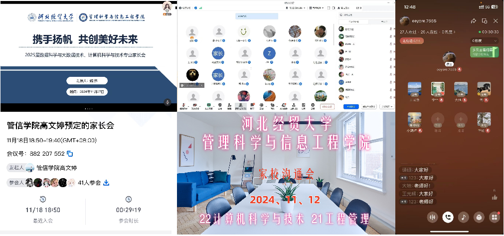 家长班会以线上方式举行,各毕业班辅导员对员工的学习和生活情况进行了详细介绍,帮助家长更好地了解员工的学习和生活。对当前就业形式、专业就业方向,近三年考研等情况进行了分析,向家长强调了保持合理就业预期的重要性,鼓励家长与员工一起,制定切实可行的就业计划。