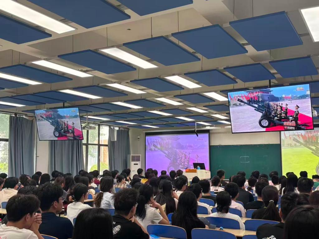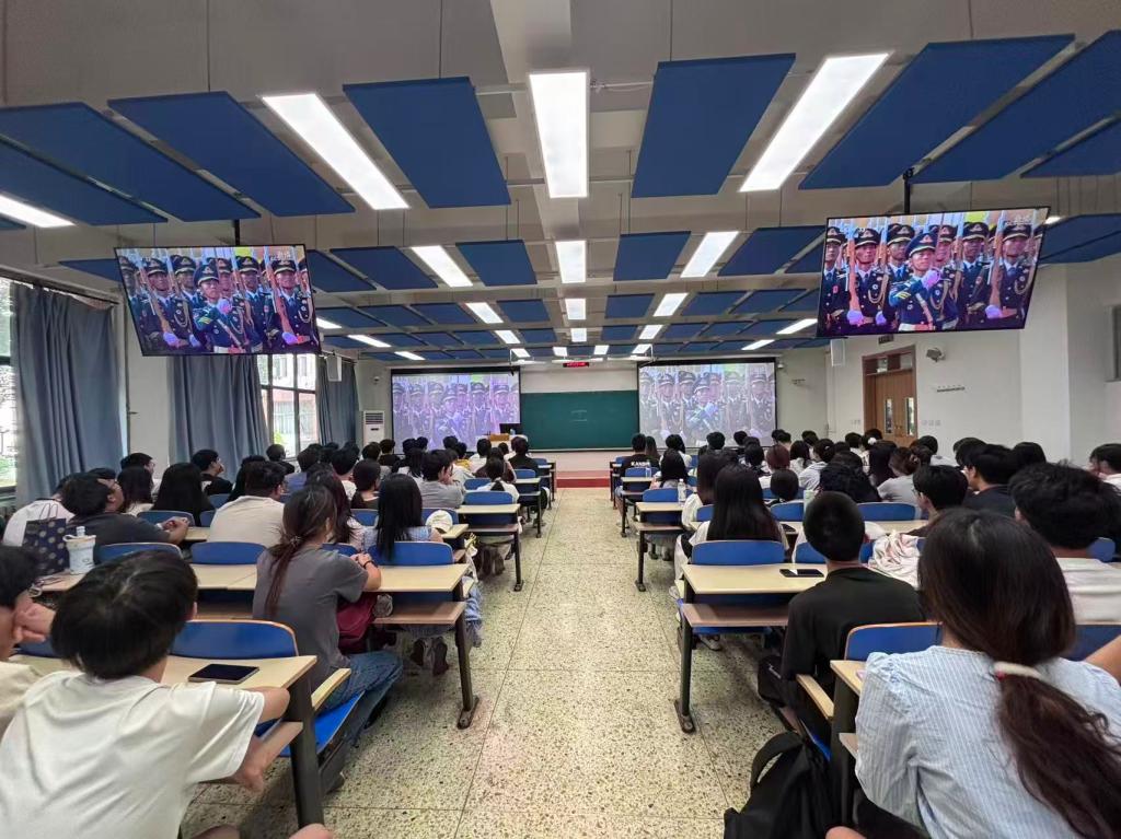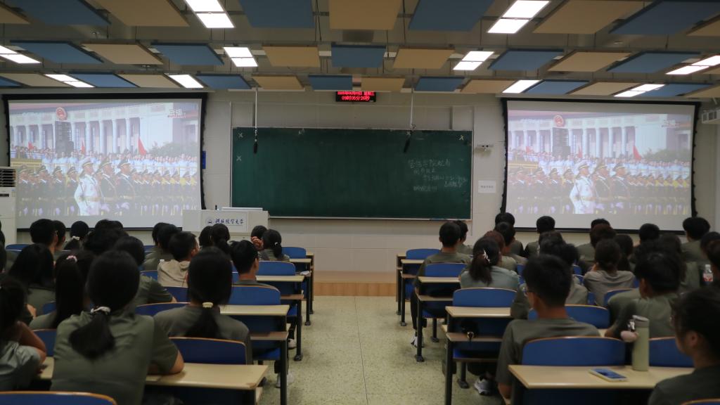 公司将观看阅兵式作为军训必修课程和入学教育重要内容,组织2025级全体本科新生在校礼堂、教室集中观看;其他年级员工由辅导员通过主题班会或由任课教师随堂组织集中观看;研究生由公司研究生会组织集中观看;行政工作人员分别在三办和一办两个会议室集中观看,其他教职工自行观看,实现了师生观看全覆盖。