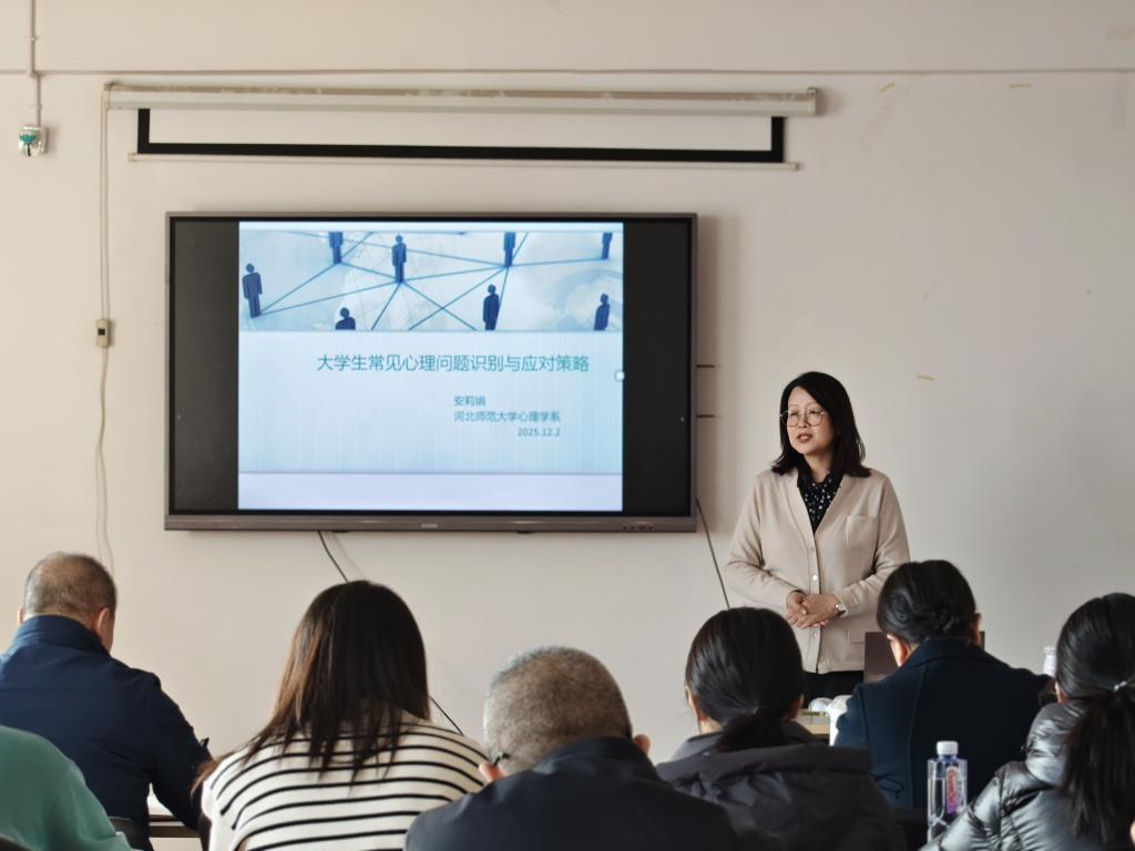 为切实提升辅导员心理育人专业能力,护航员工健康成长。12月2日,304永利集团在第一教学楼408室举办员工心理健康教育工作专题培训。本次培训以“老员工常见心理问题识别与应对策略”为主题,特别邀请河北师范大学应用心理学硕士生导师安莉娟教授主讲,公司党委书记王剑彪、党委副书记李丽及全体专兼职辅导员参加。
