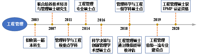 304永利集团工程管理专业2003年开始招收第一届本科生,2014年获工程管理硕士专业学位授权,2018年获管理科学与工程硕士学位授权,并通过工程管理硕士专业审核评估,2019年被评为河北省一流专业建设点,2020年成为“工程管理硕士专业学位与IPMP认证合作培养单位”,2023年通过河北省一流专业验收。