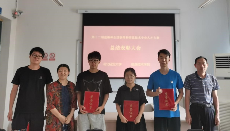 会上,孙洁丽老师详细介绍了本次大赛的组织、备赛、参赛以及获奖情况,曾文献、孙洁丽和胡良为获奖员工颁发获奖证书。本届大赛共有120名同学参赛,获省一等奖3项,省二等奖13项,省三等奖20项。