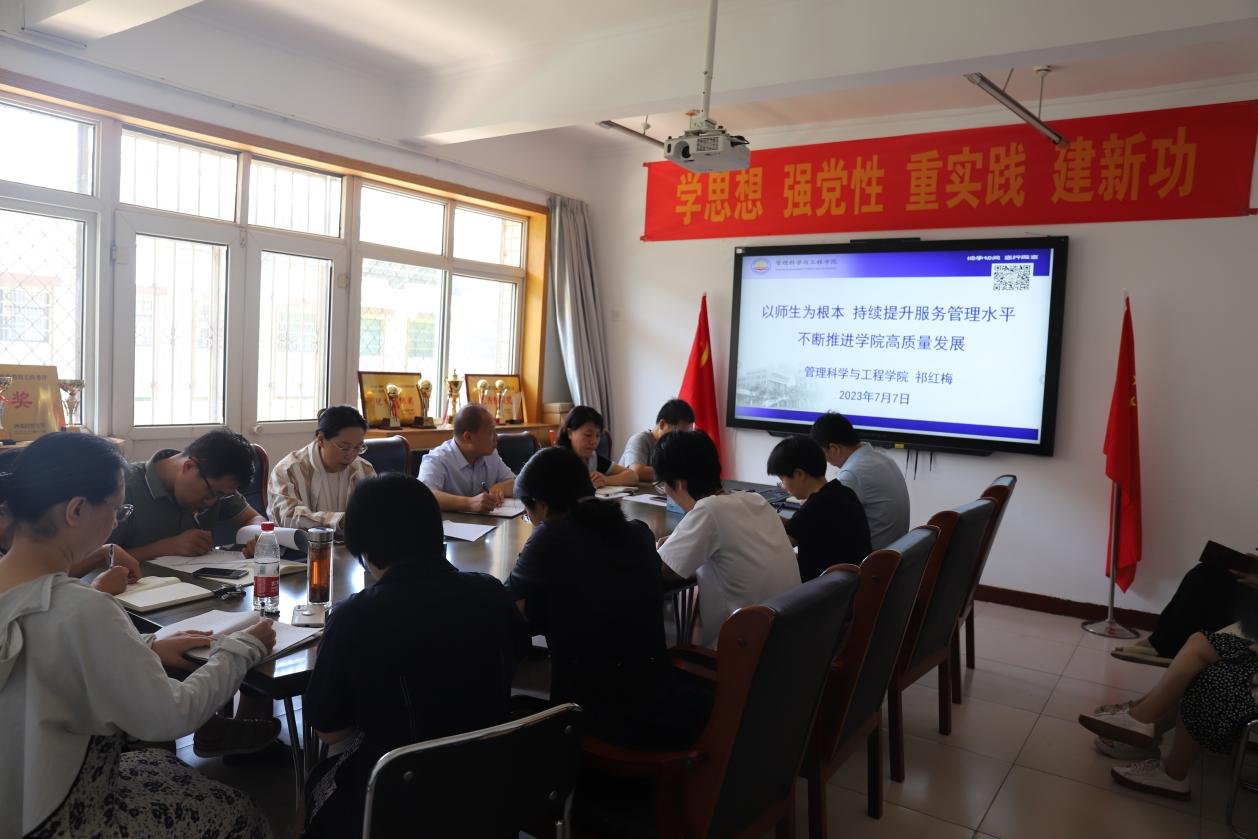 7月7日上午,管理科学与工程公司领导班子成员分别讲授主题教育专题党课,公司全体行政人员、党支部书记、辅导员、教师代表参加学习。