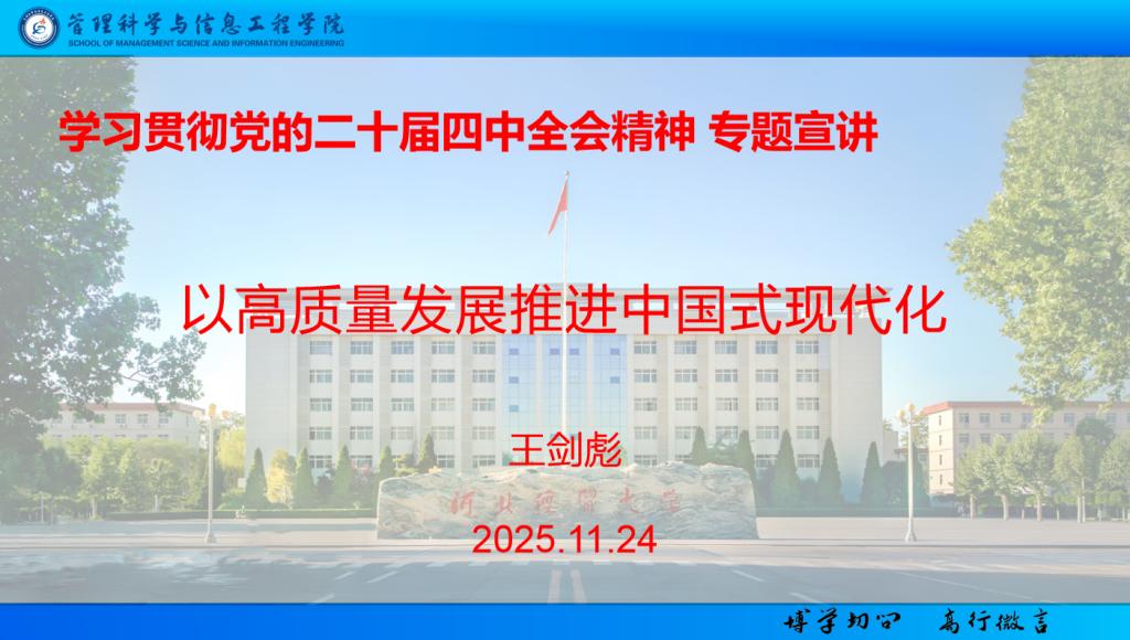 为深入学习贯彻党的二十届四中全会精神,引导全体教职工深刻领会全会精神实质,11月24日,公司党委书记王剑彪面向全体教职工讲授学习贯彻党的二十届四中全会精神专题党课。