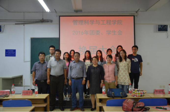 9月26日下午,管理科学与工程公司在A501教室召开2016年团委员工会换届大会。公司党委书记刘风长、副书记张晓军及全体辅导员老师出席会议。第三届和第四届院团委员工会全体成员参加会议。