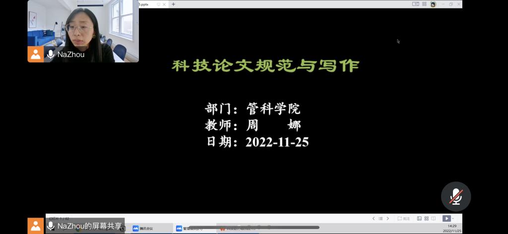 2022年11月25日,公司周娜博士通过腾讯会议做了题为“科技论文写作规范”的学术讲座。公司教师、研究生30余人参加了此次讲座。