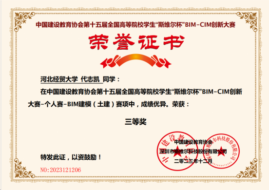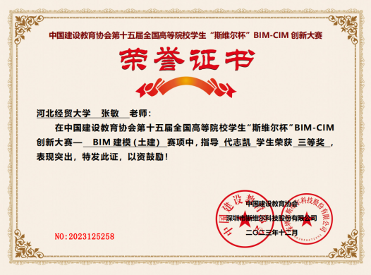公司学子在第十五届全国高等院校员工“斯维尔杯”BIM-CIM创新大赛中获奖
