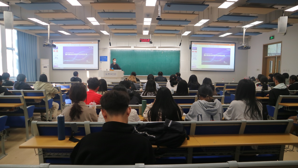 本次讲座不仅为同学们打开了数字经济的大门,使同学们了解了制造业数字化转型的背景、途径和方式,还帮助同学们接触到大数据产业前沿领域知识,开阔了眼界,受到了同学们的热烈欢迎。