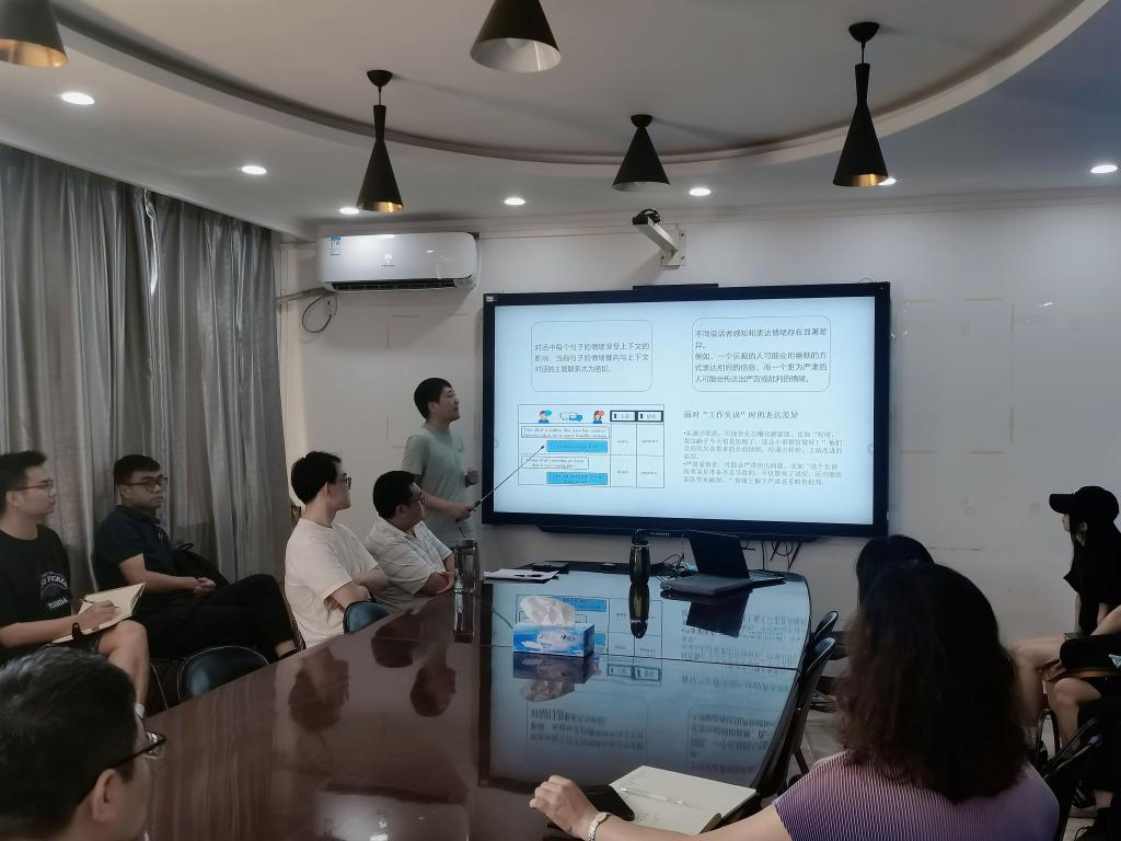 9月8日下午,公司勾智楠博士在一办5楼西会议室作题为“基于生成式预训练模型的情绪感知研究”的专题报告。报告由数据科学与大数据技术系主任魏若岩副教授主持,部分教师及研究生参加。